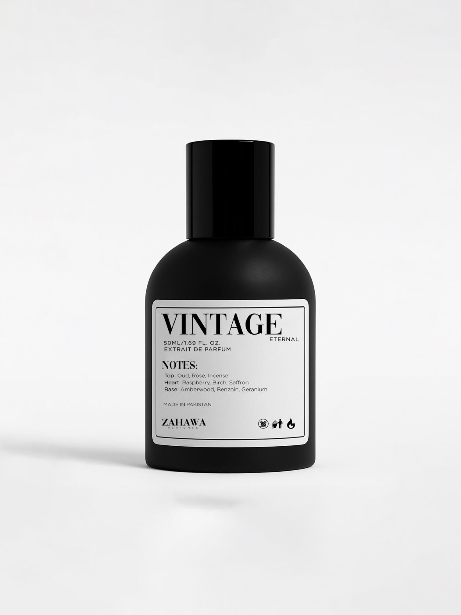 VINTAGE is a unisex fragrance that blends smoky oud, sweet raspberry, and warm incense — creating a scent that feels timeless and unforgettable.